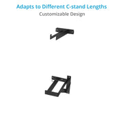 Since these two parts are independent of one another, you can easily custom fit the hanger to whatever size C- stands you have, offering adaptability to different C-stand lengths.