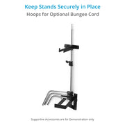 Also, it has in-built hoops on either side to fasten the bungee cords around the stand and keep stands securely in place in the rack.